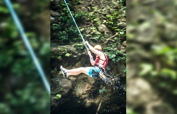 Your adrenaline will be pumping when you rappel down a gushing waterfall, ending with a splash into the pool below. Thrilling! After the first rappel, you’ll do a guided climb back up the rock wall alongside the waterfall and rappel down again. Then you’ll do another rappel and a Tarzan swing through the cascading water.